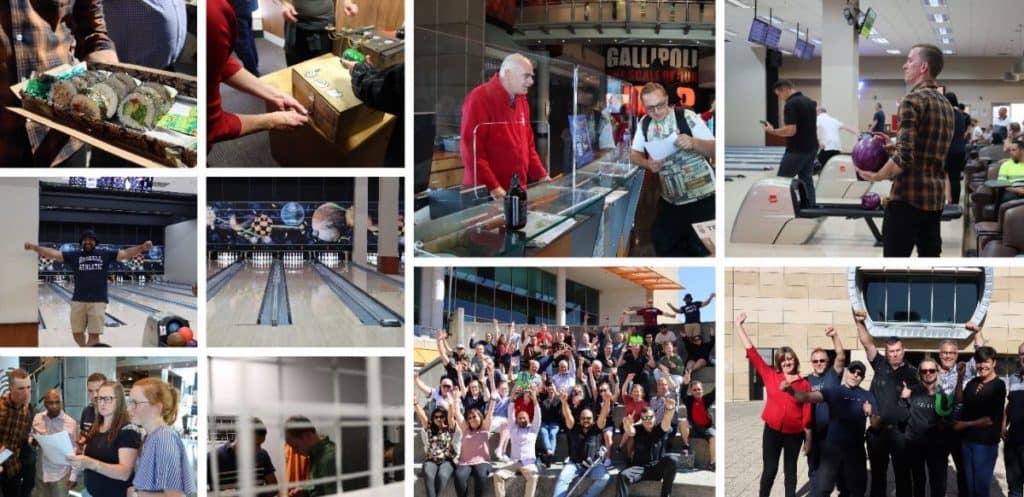 This completed, we again clambered aboard the bus and headed for our first mystery destination. Bowlarama! The day really kicked off now with the team split into 6 groups, each competing for the UltiMate Trophy.