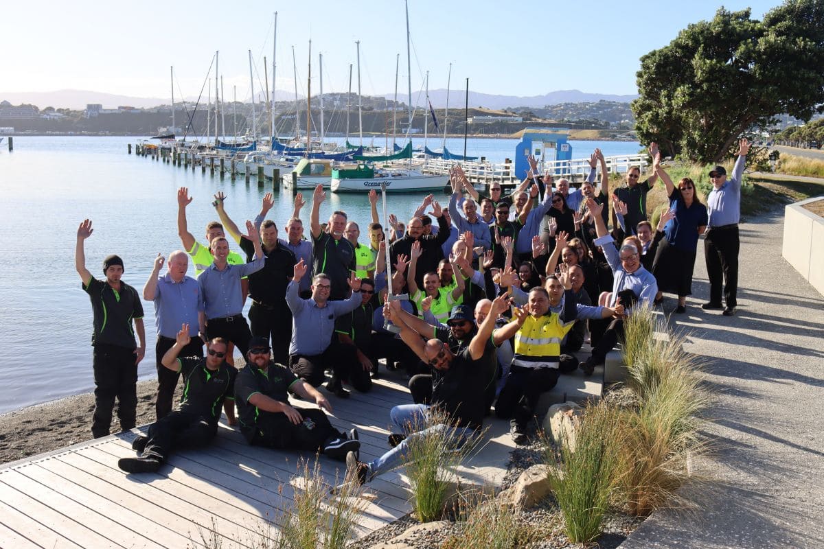 We discovered it’s true what they say, you can’t beat Wellington on a good day! After the many flights from all around the country had arrived and once everyone was accounted for – including the technical director who very nearly got left behind 😉 – we made a beeline for the ‘Wind Needle’ for a full team photo.