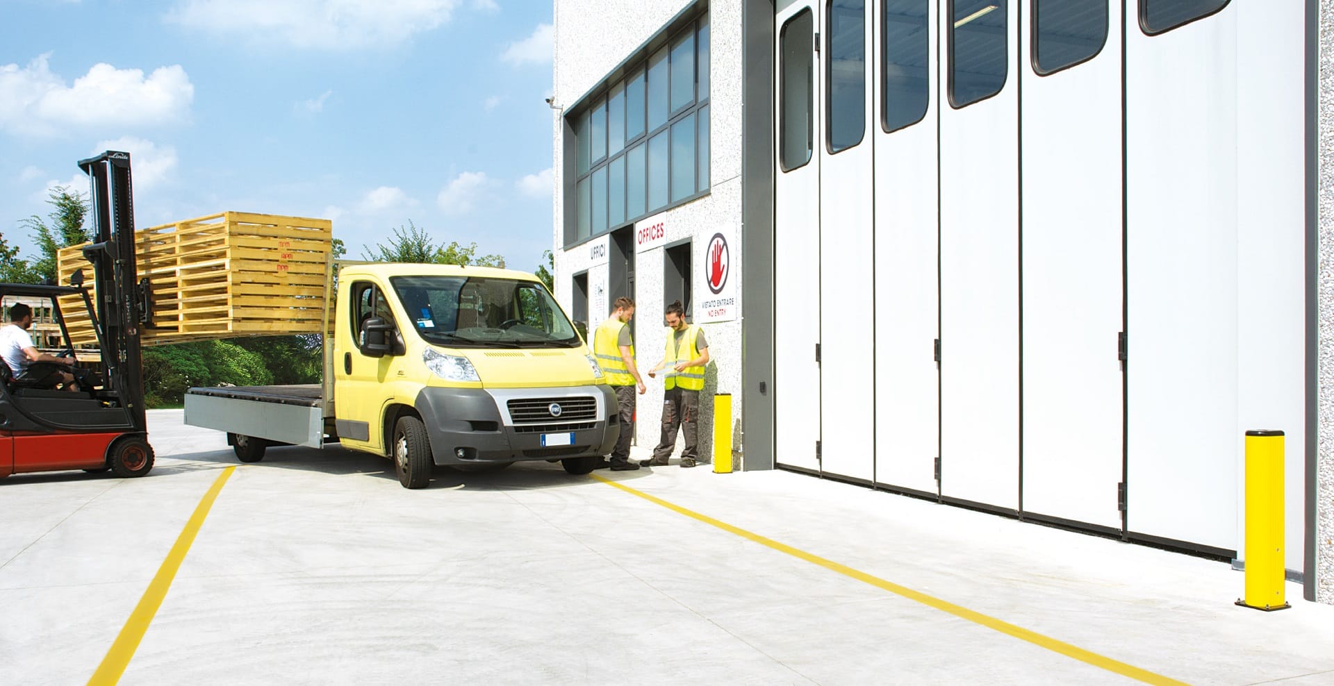Designed to protect doorways or protruding corners from accidental impacts with forklifts and other moving vehicles, and prevent your floor from being ripped up if impacted.
