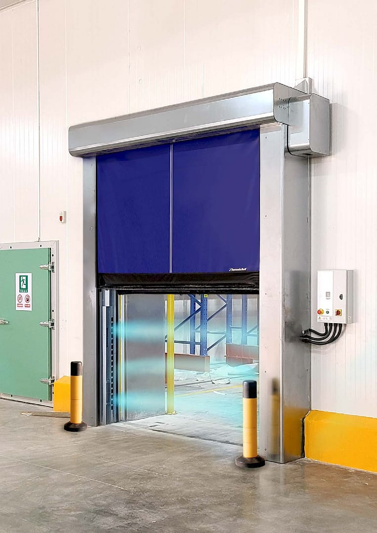 When the door is open, the integrated horizontal air barrier system controls the transmission of warm/moist air across the doorway, almost eliminating ice build-up. When closed, the dual curtain design creates a dead air space filled with treated air for ultimate insulation.