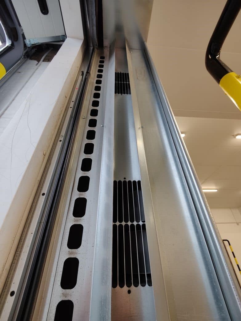 Refeed slot that allows the curtain to be fed back into the guides in the event of an accidental impact
